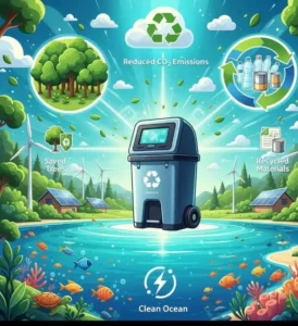 It’s a smart recycling bin that does the sorting for you. No more guessing. No more mistakes. Just drop your trash in, and the bin figures out the rest.