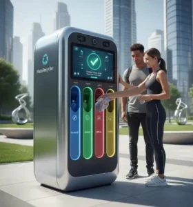 It’s a smart recycling bin that does the sorting for you. No more guessing. No more mistakes. Just drop your trash in, and the bin figures out the rest.
